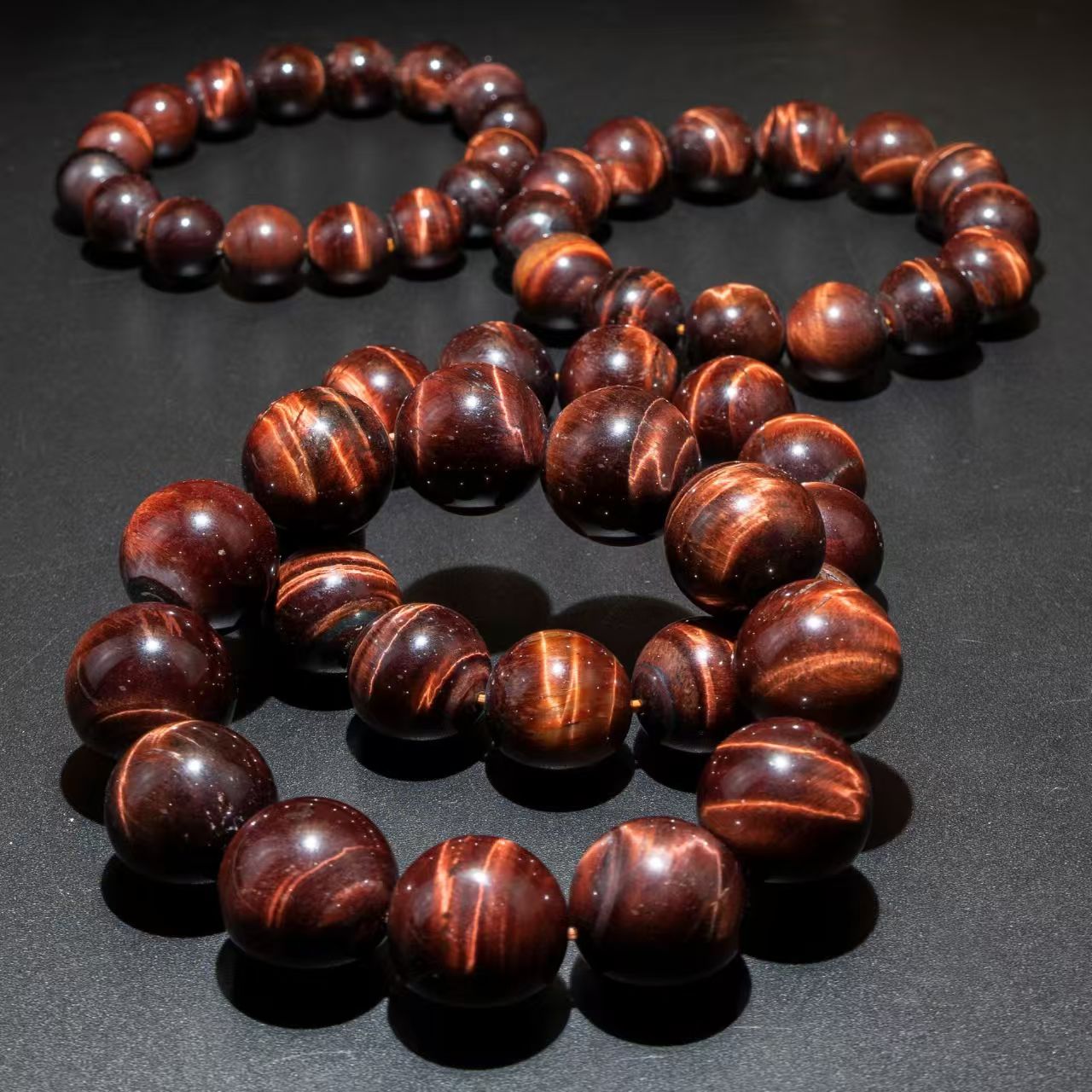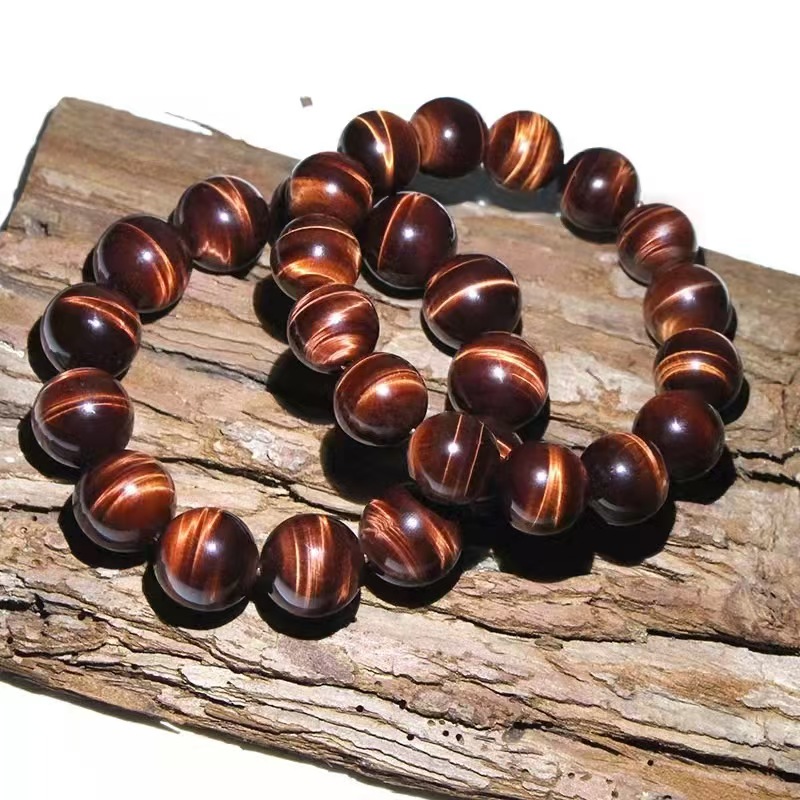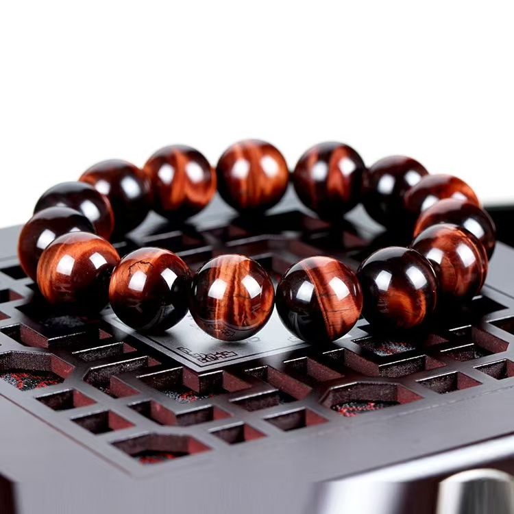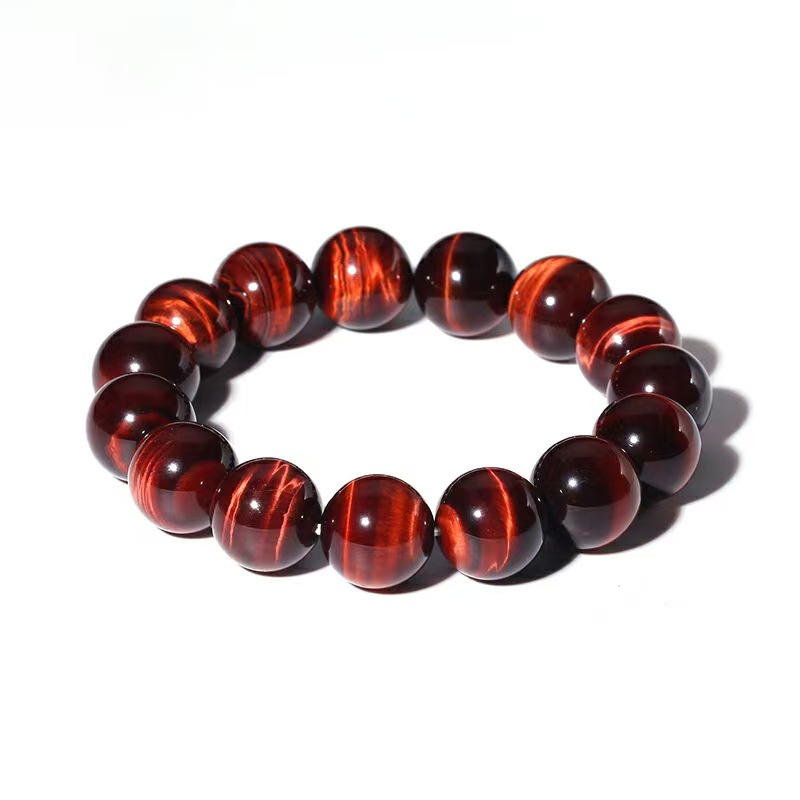 Genuine Natural Red Tiger's Eye Beaded Bracelet in Wine Red with Vintage Style